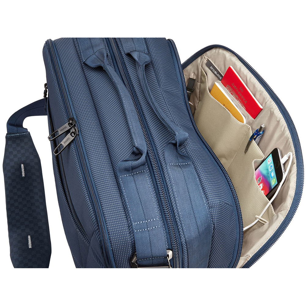 Organizeaza electronicele mici si accesoriile in panoul frontal prevazut cu buzunare, suporturi elastice dar si cu sistem PowerPocket ce permite incarcarea dispozitivelor in timpul calatoriei.