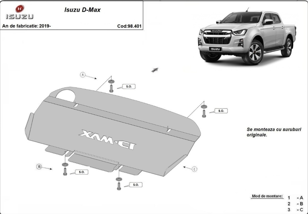 Caracteristici tehnice scut metalic Isuzu D-Max:
