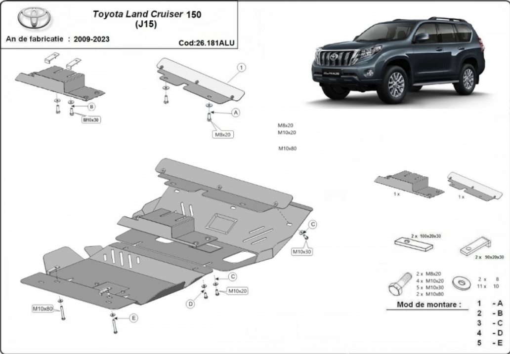 Scut aluminiu motor Toyota Land Cruiser J150 dupa 2009